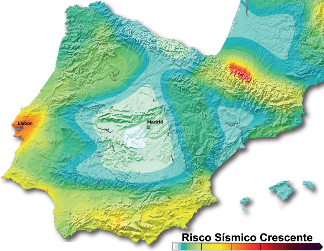 As zonas de maior intensidade sísmica em Portugal são, os Açores, o Algarve e o Vale inferior do Tejo, conforme imagem do Seismic Hazard Harmonization in Europe.