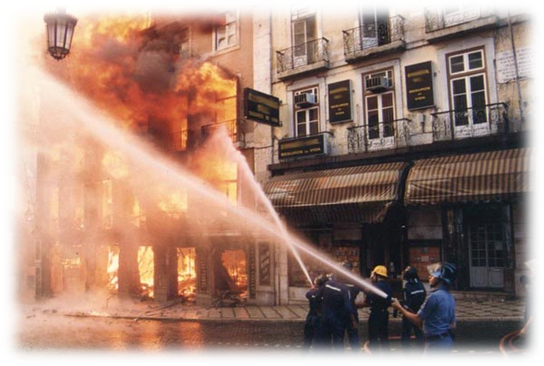 pelo fogo descontrolado, voltou à baixa de Lisboa